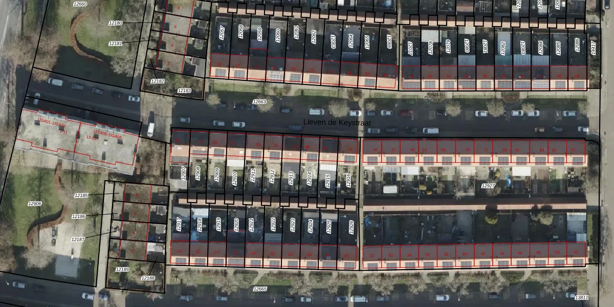 Het perceel waarop Lieven de Keystraat 39 staat heeft een oppervlakte van 133 m². Dit is een middelgroot perceel. De perceeloppervlakte wordt geregistreerd door het Kadaster. Gedetailleerde informatie over de maten van dit perceel kunt u vinden in het rapport Kadastrale kaart met maatvoering van Lieven de Keystraat 39.