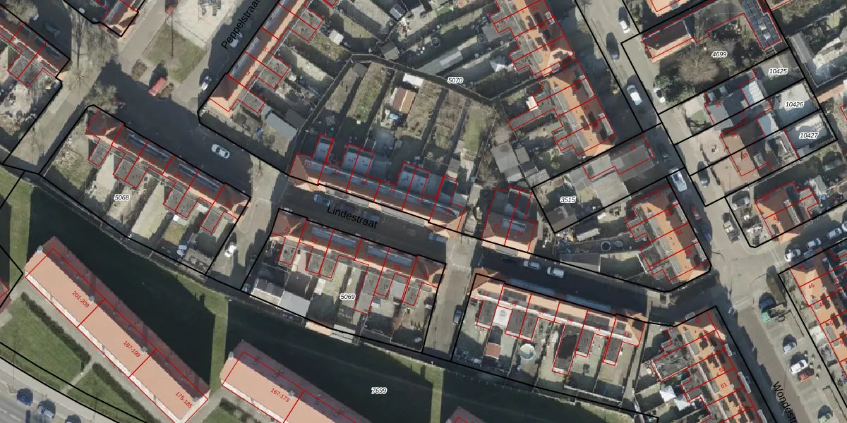 Het perceel waarop Lindestraat 18 staat heeft een oppervlakte van 6550 m². Dit is een zeer groot perceel. De perceeloppervlakte wordt geregistreerd door het Kadaster. Gedetailleerde informatie over de maten van dit perceel kunt u vinden in het rapport Kadastrale kaart met maatvoering van Lindestraat 18.