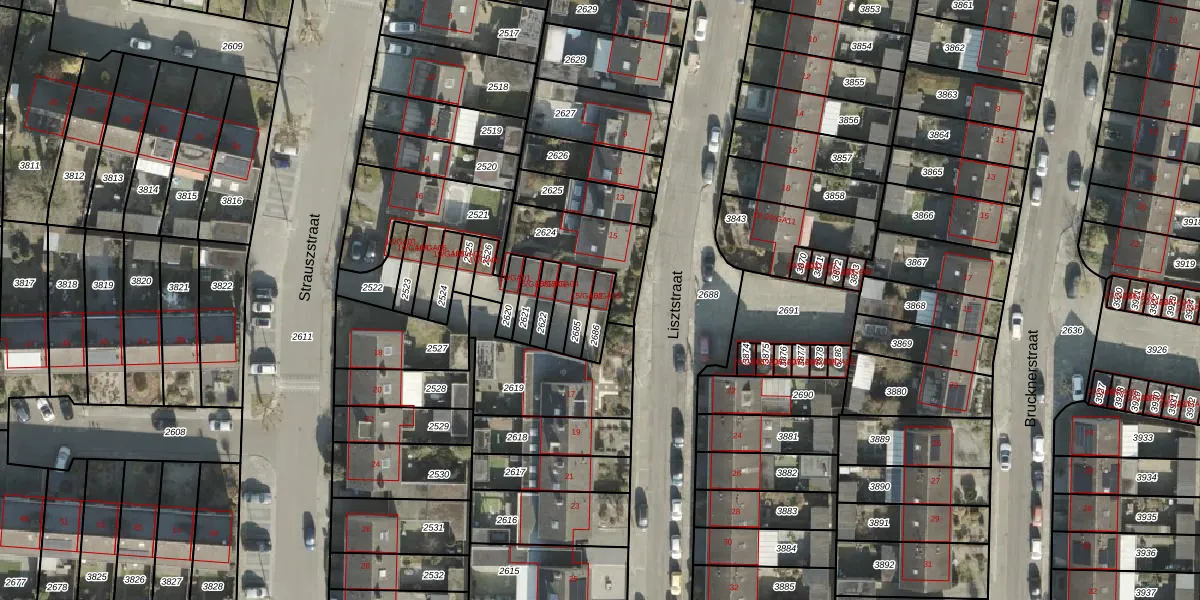Gebruik de zoekbalk of klik op een perceel voor informatie over de adressen binnen dit perceel.