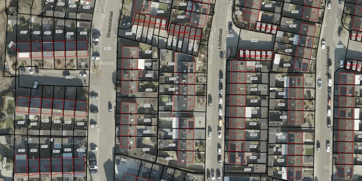 Gebruik de zoekbalk of klik op een perceel voor informatie over de adressen binnen dit perceel.