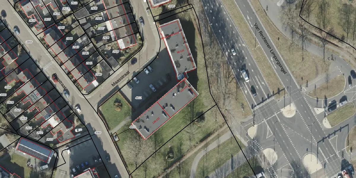 Het perceel waarop Maasstraat 122 staat heeft een oppervlakte van 3063 m². Dit is een zeer groot perceel. De perceeloppervlakte wordt geregistreerd door het Kadaster. Gedetailleerde informatie over de maten van dit perceel kunt u vinden in het rapport Kadastrale kaart met maatvoering van Maasstraat 122.