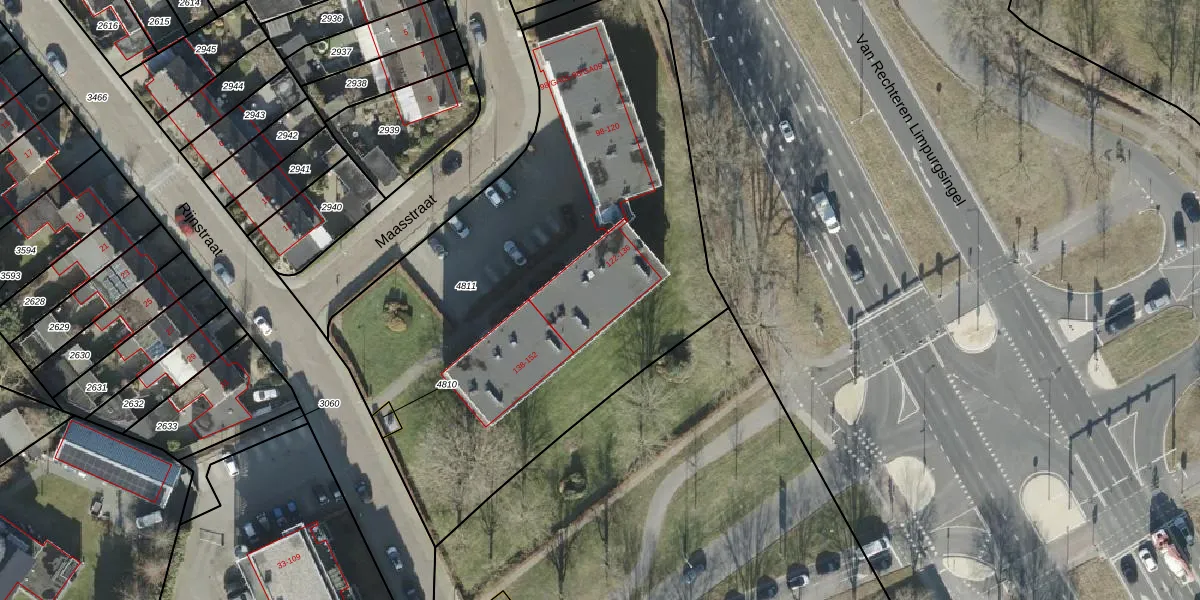 Het perceel waarop Maasstraat 134 staat heeft een oppervlakte van 3063 m². Dit is een zeer groot perceel. De perceeloppervlakte wordt geregistreerd door het Kadaster. Gedetailleerde informatie over de maten van dit perceel kunt u vinden in het rapport Kadastrale kaart met maatvoering van Maasstraat 134.