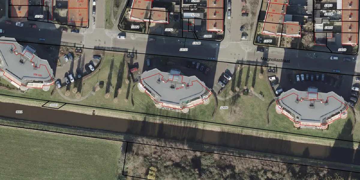 Magnoliastraat 110 is gelegen op kadastraal perceel AML01H12650. Deze kadastrale aanduiding is uniek en wordt gebruikt door het Kadaster om eigendomsrechten en andere zakelijke rechten vast te leggen. Het perceel maakt onderdeel uit van de kadastrale gemeente Ambt-Almelo.