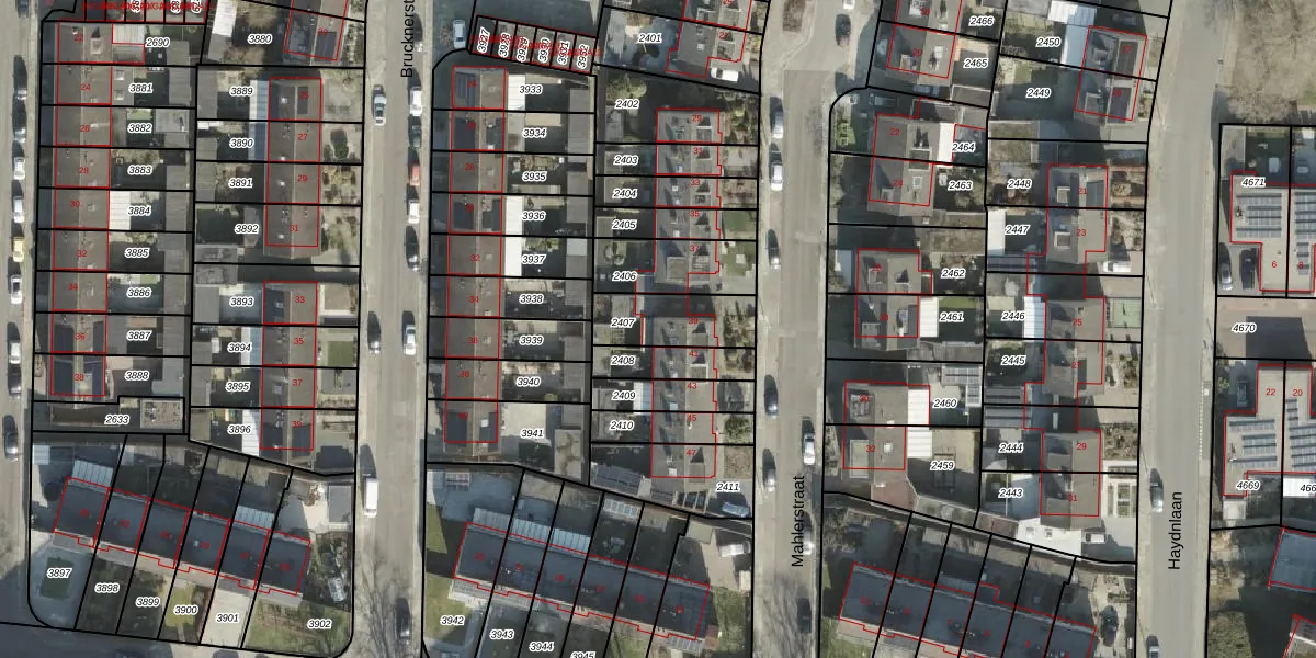 Mahlerstraat 39 is gelegen op kadastraal perceel AML01I2407. Deze kadastrale aanduiding is uniek en wordt gebruikt door het Kadaster om eigendomsrechten en andere zakelijke rechten vast te leggen. Het perceel maakt onderdeel uit van de kadastrale gemeente Ambt-Almelo.
