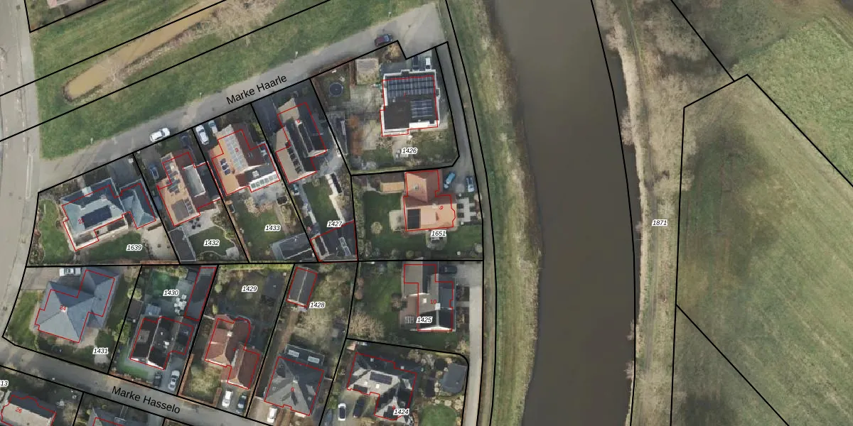 Marke Haarle 9 is gelegen op kadastraal perceel AML01D1651. Deze kadastrale aanduiding is uniek en wordt gebruikt door het Kadaster om eigendomsrechten en andere zakelijke rechten vast te leggen. Het perceel maakt onderdeel uit van de kadastrale gemeente Ambt-Almelo.