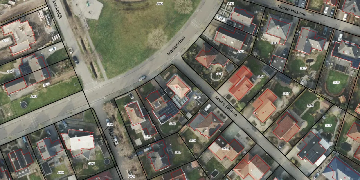 Markerichter 32 is gelegen op kadastraal perceel AML01D1399. Deze kadastrale aanduiding is uniek en wordt gebruikt door het Kadaster om eigendomsrechten en andere zakelijke rechten vast te leggen. Het perceel maakt onderdeel uit van de kadastrale gemeente Ambt-Almelo.