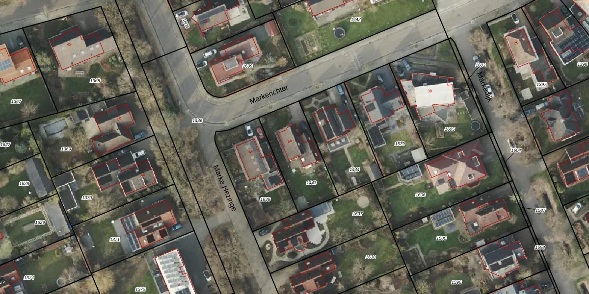 Het perceel waarop Markerichter 44 staat heeft een oppervlakte van 519 m². Dit is een groot perceel. De perceeloppervlakte wordt geregistreerd door het Kadaster. Gedetailleerde informatie over de maten van dit perceel kunt u vinden in het rapport Kadastrale kaart met maatvoering van Markerichter 44.