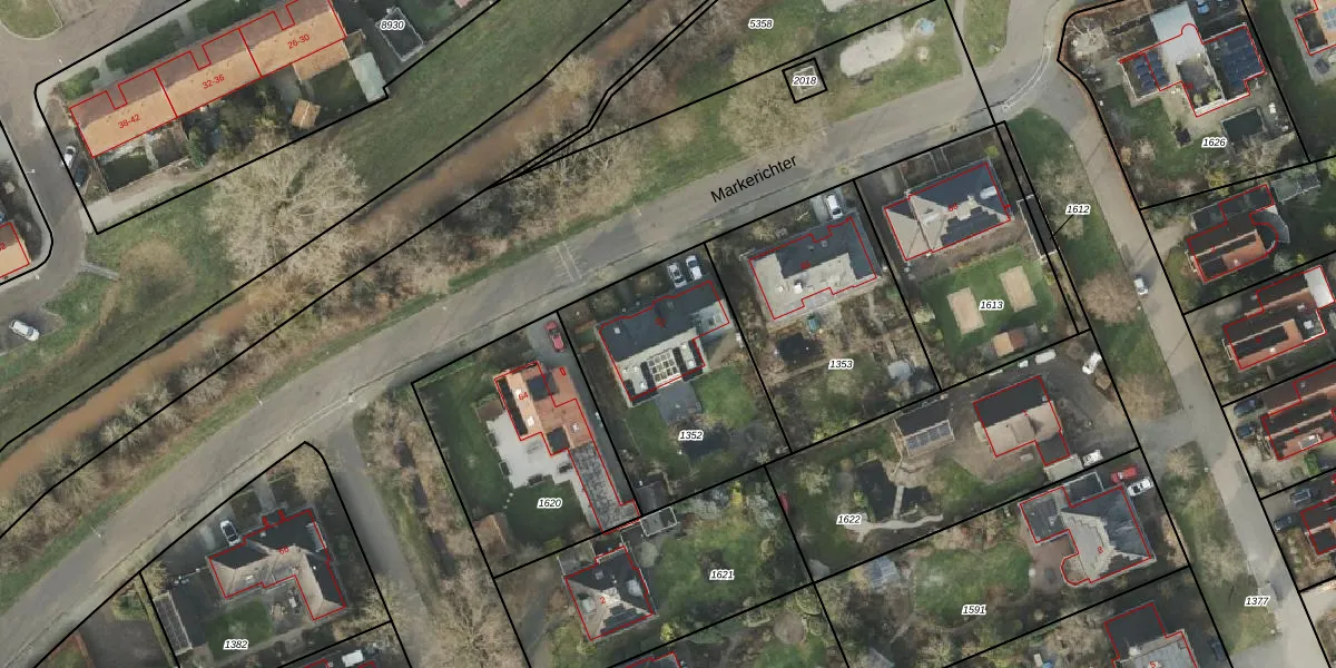 Het perceel waarop Markerichter 62 staat heeft een oppervlakte van 818 m². Dit is een groot perceel. De perceeloppervlakte wordt geregistreerd door het Kadaster. Gedetailleerde informatie over de maten van dit perceel kunt u vinden in het rapport Kadastrale kaart met maatvoering van Markerichter 62.