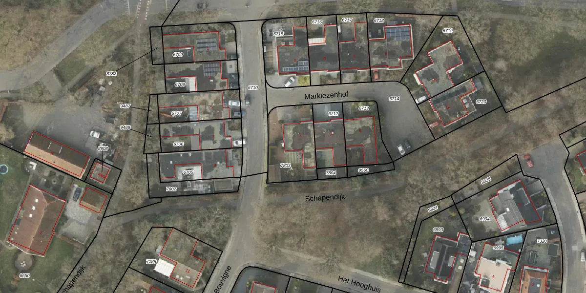 Het perceel waarop Markiezenhof 1 staat heeft een oppervlakte van 418 m². Dit is een groot perceel. De perceeloppervlakte wordt geregistreerd door het Kadaster. Gedetailleerde informatie over de maten van dit perceel kunt u vinden in het rapport Kadastrale kaart met maatvoering van Markiezenhof 1.