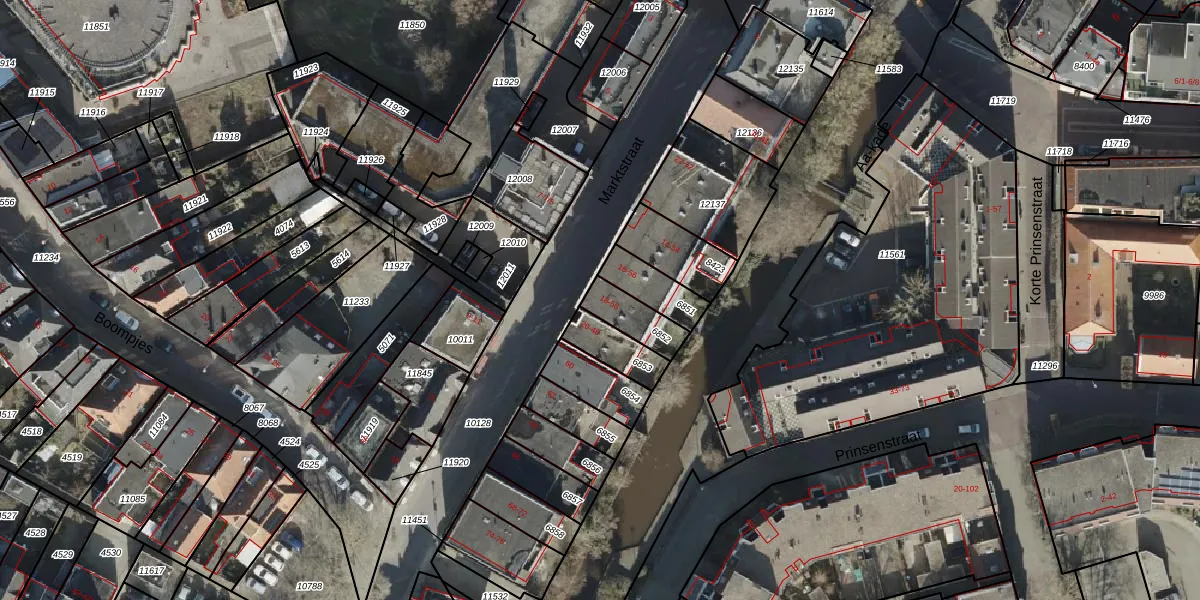 Het perceel waarop Marktstraat 18 staat heeft een oppervlakte van 108 m². Dit is een middelgroot perceel. De perceeloppervlakte wordt geregistreerd door het Kadaster. Gedetailleerde informatie over de maten van dit perceel kunt u vinden in het rapport Kadastrale kaart met maatvoering van Marktstraat 18.