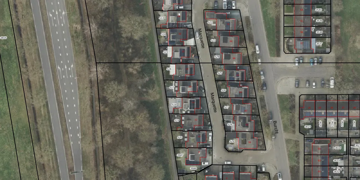 Het perceel waarop Marquette 16 staat heeft een oppervlakte van 203 m². Dit is een middelgroot perceel. De perceeloppervlakte wordt geregistreerd door het Kadaster. Gedetailleerde informatie over de maten van dit perceel kunt u vinden in het rapport Kadastrale kaart met maatvoering van Marquette 16.