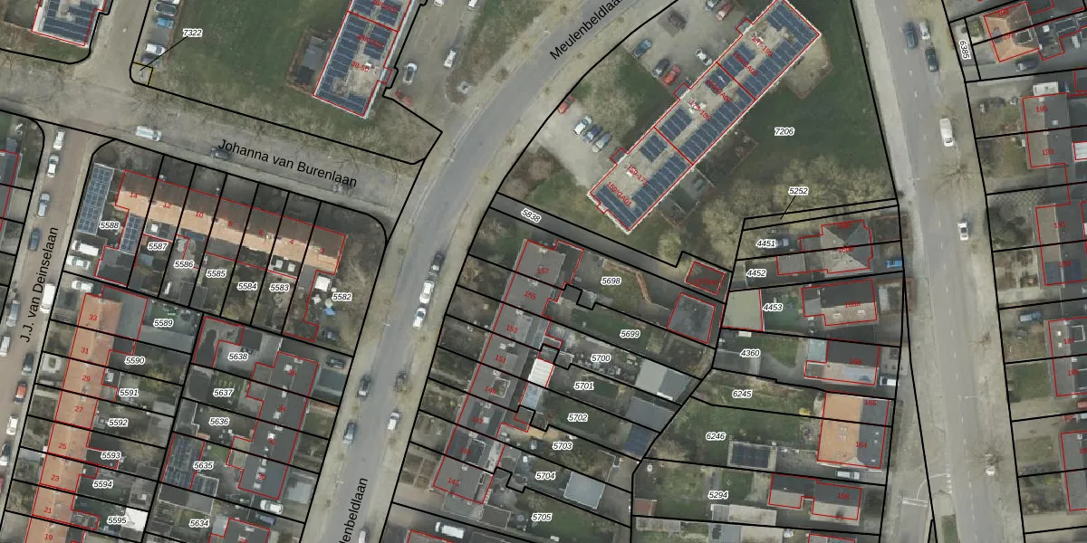 Het perceel waarop Meulenbeldlaan 157 staat heeft een oppervlakte van 430 m². Dit is een groot perceel. De perceeloppervlakte wordt geregistreerd door het Kadaster. Gedetailleerde informatie over de maten van dit perceel kunt u vinden in het rapport Kadastrale kaart met maatvoering van Meulenbeldlaan 157.