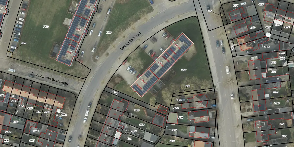 Meulenbeldlaan 165 is gelegen op kadastraal perceel AML01A7206. Deze kadastrale aanduiding is uniek en wordt gebruikt door het Kadaster om eigendomsrechten en andere zakelijke rechten vast te leggen. Het perceel maakt onderdeel uit van de kadastrale gemeente Ambt-Almelo.