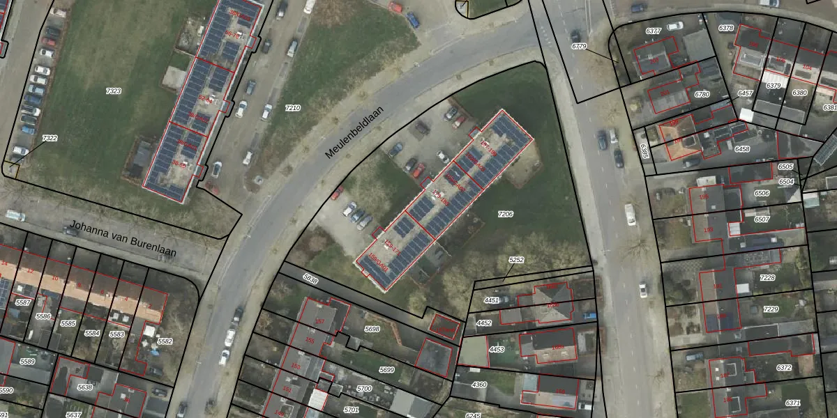 Meulenbeldlaan 173 is gelegen op kadastraal perceel AML01A7206. Deze kadastrale aanduiding is uniek en wordt gebruikt door het Kadaster om eigendomsrechten en andere zakelijke rechten vast te leggen. Het perceel maakt onderdeel uit van de kadastrale gemeente Ambt-Almelo.