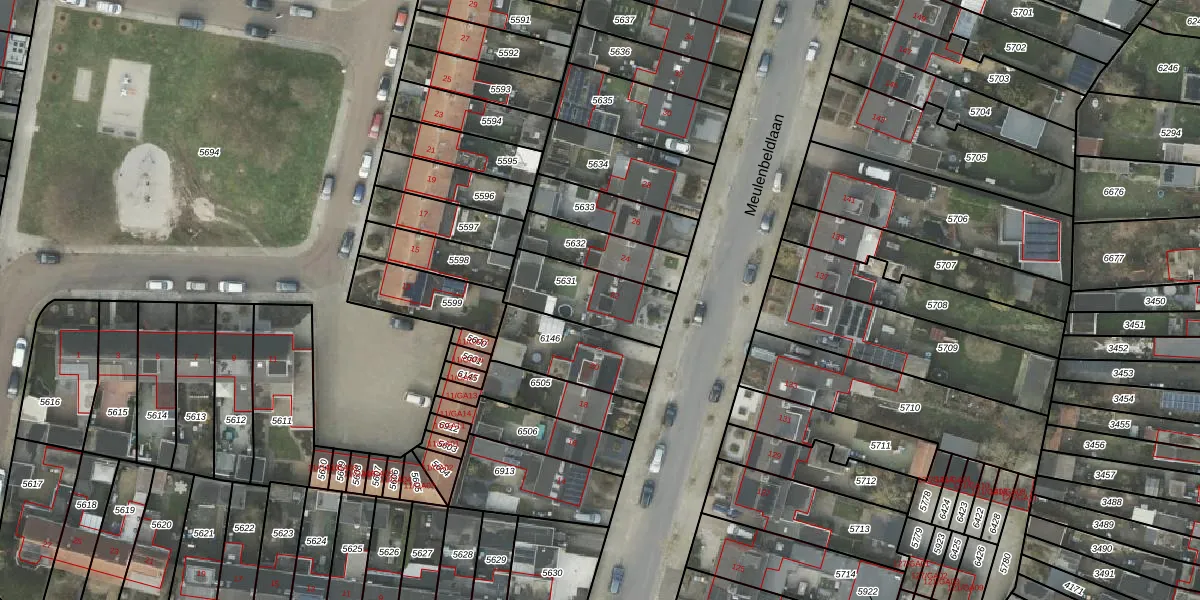 Meulenbeldlaan 22 is gelegen op kadastraal perceel AML01A5631. Deze kadastrale aanduiding is uniek en wordt gebruikt door het Kadaster om eigendomsrechten en andere zakelijke rechten vast te leggen. Het perceel maakt onderdeel uit van de kadastrale gemeente Ambt-Almelo.