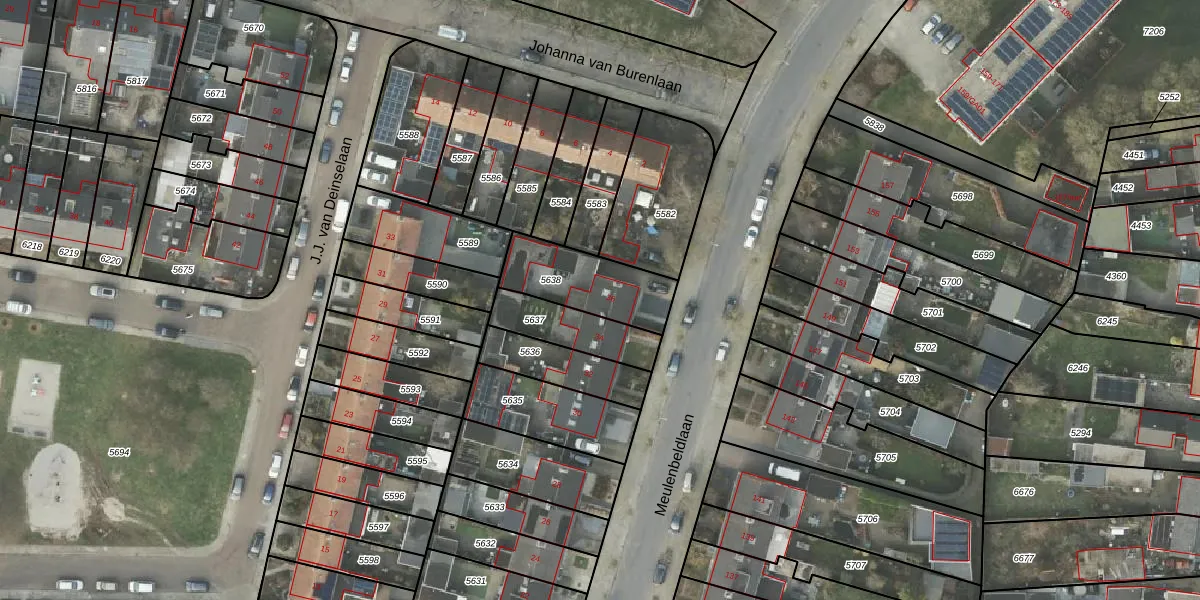Het perceel waarop Meulenbeldlaan 36 staat heeft een oppervlakte van 277 m². Dit is een middelgroot perceel. De perceeloppervlakte wordt geregistreerd door het Kadaster. Gedetailleerde informatie over de maten van dit perceel kunt u vinden in het rapport Kadastrale kaart met maatvoering van Meulenbeldlaan 36.