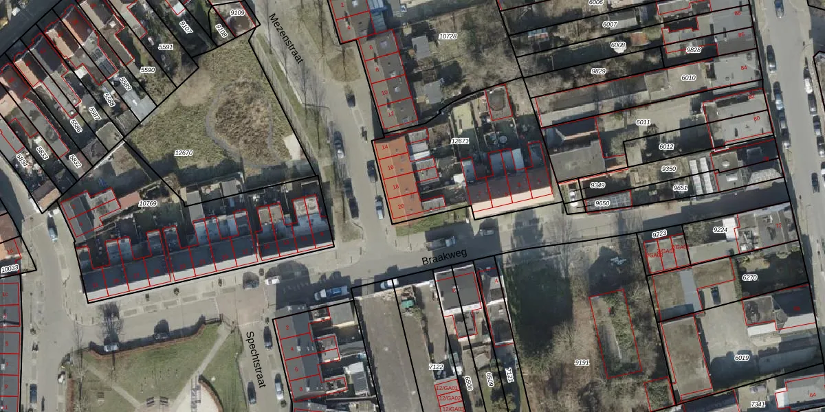 Het perceel waarop Mezenstraat 20 staat heeft een oppervlakte van 1075 m². Dit is een zeer groot perceel. De perceeloppervlakte wordt geregistreerd door het Kadaster. Gedetailleerde informatie over de maten van dit perceel kunt u vinden in het rapport Kadastrale kaart met maatvoering van Mezenstraat 20.
