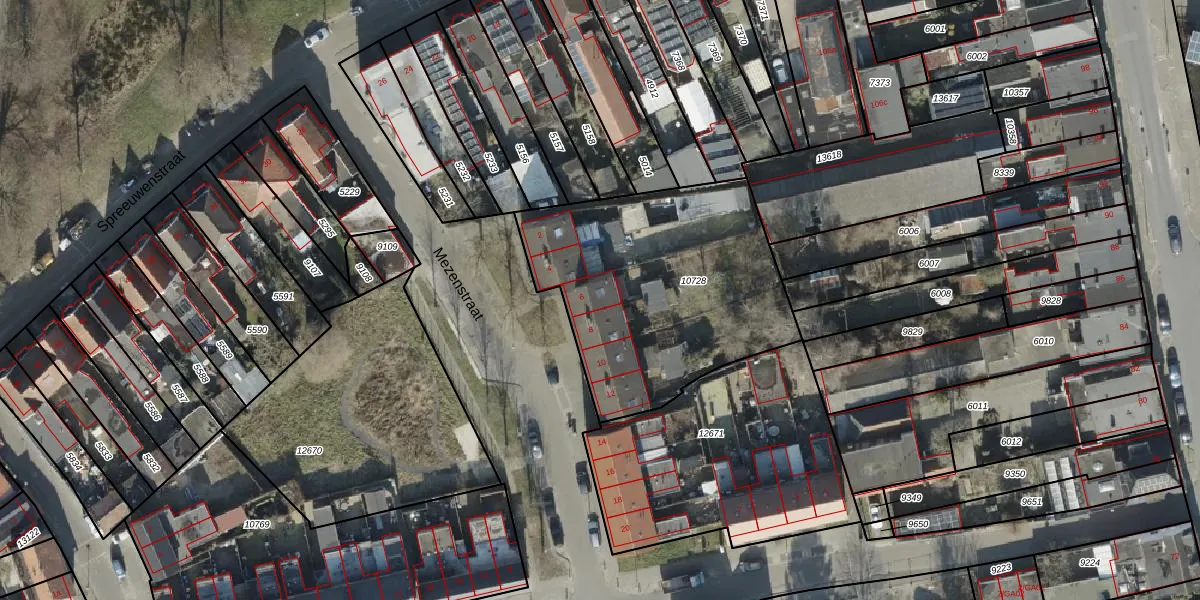 Het perceel waarop Mezenstraat 6 staat heeft een oppervlakte van 1225 m². Dit is een zeer groot perceel. De perceeloppervlakte wordt geregistreerd door het Kadaster. Gedetailleerde informatie over de maten van dit perceel kunt u vinden in het rapport Kadastrale kaart met maatvoering van Mezenstraat 6.