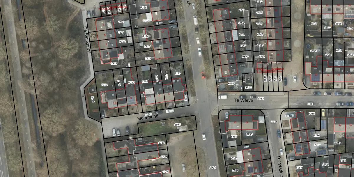 Gebruik de zoekbalk of klik op een perceel voor informatie over de adressen binnen dit perceel.