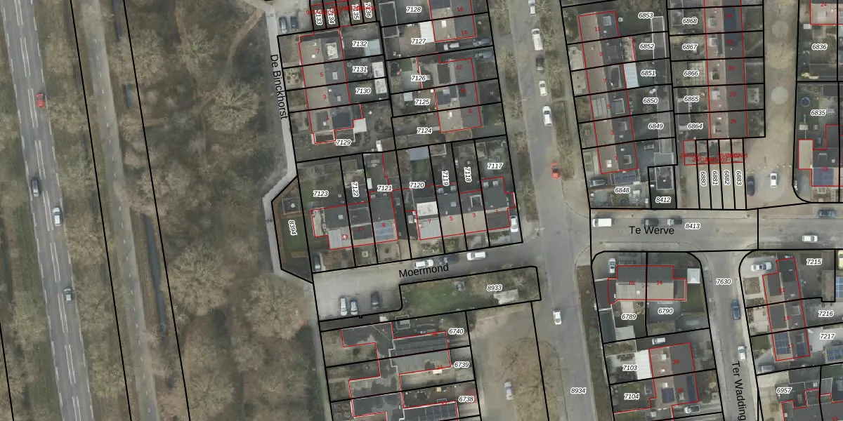 Gebruik de zoekbalk of klik op een perceel voor informatie over de adressen binnen dit perceel.