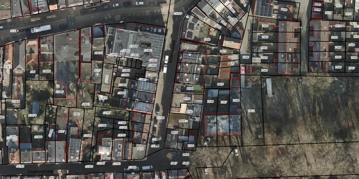 Het perceel waarop Molenstraat 9 staat heeft een oppervlakte van 100 m². Dit is een middelgroot perceel. De perceeloppervlakte wordt geregistreerd door het Kadaster. Gedetailleerde informatie over de maten van dit perceel kunt u vinden in het rapport Kadastrale kaart met maatvoering van Molenstraat 9.
