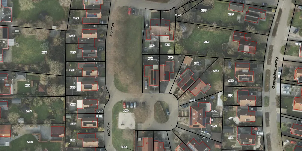 Het perceel waarop Montfort 39 staat heeft een oppervlakte van 288 m². Dit is een middelgroot perceel. De perceeloppervlakte wordt geregistreerd door het Kadaster. Gedetailleerde informatie over de maten van dit perceel kunt u vinden in het rapport Kadastrale kaart met maatvoering van Montfort 39.