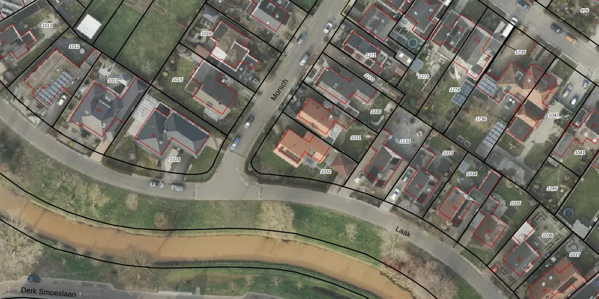 Het perceel waarop Morsch 1 staat heeft een oppervlakte van 484 m². Dit is een groot perceel. De perceeloppervlakte wordt geregistreerd door het Kadaster. Gedetailleerde informatie over de maten van dit perceel kunt u vinden in het rapport Kadastrale kaart met maatvoering van Morsch 1.