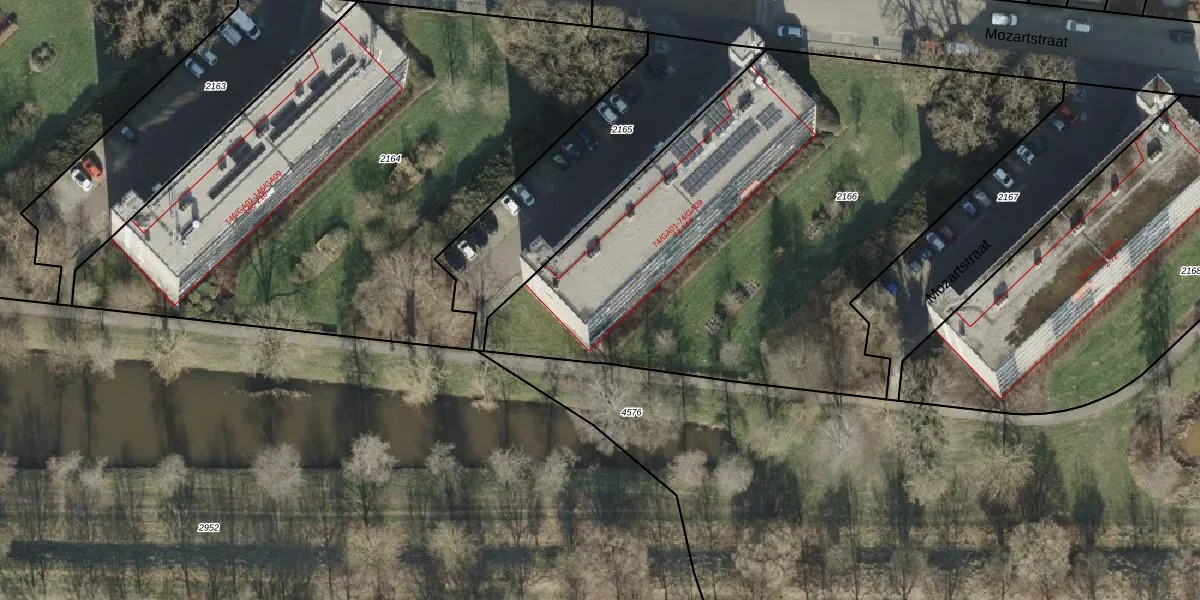 Het perceel waarop Mozartstraat 120 staat heeft een oppervlakte van 3055 m². Dit is een zeer groot perceel. De perceeloppervlakte wordt geregistreerd door het Kadaster. Gedetailleerde informatie over de maten van dit perceel kunt u vinden in het rapport Kadastrale kaart met maatvoering van Mozartstraat 120.