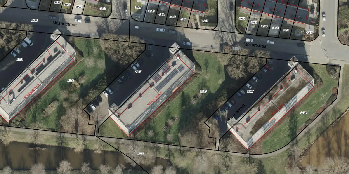 Het perceel waarop Mozartstraat 136 staat heeft een oppervlakte van 3055 m². Dit is een zeer groot perceel. De perceeloppervlakte wordt geregistreerd door het Kadaster. Gedetailleerde informatie over de maten van dit perceel kunt u vinden in het rapport Kadastrale kaart met maatvoering van Mozartstraat 136.