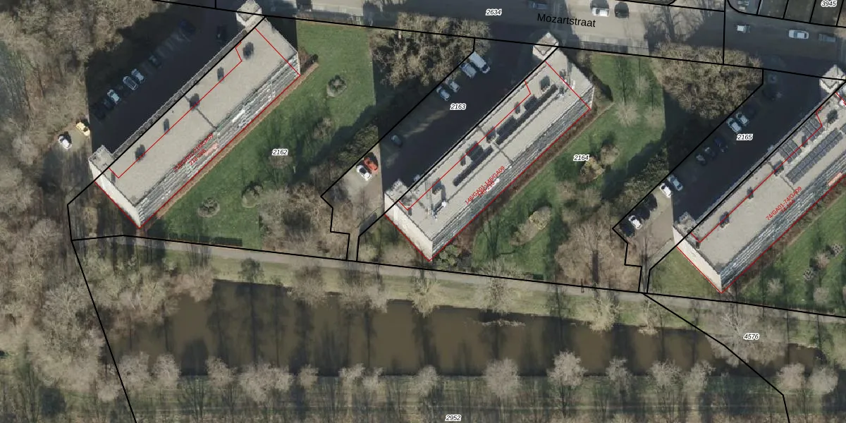 Het perceel waarop Mozartstraat 156 staat heeft een oppervlakte van 3055 m². Dit is een zeer groot perceel. De perceeloppervlakte wordt geregistreerd door het Kadaster. Gedetailleerde informatie over de maten van dit perceel kunt u vinden in het rapport Kadastrale kaart met maatvoering van Mozartstraat 156.