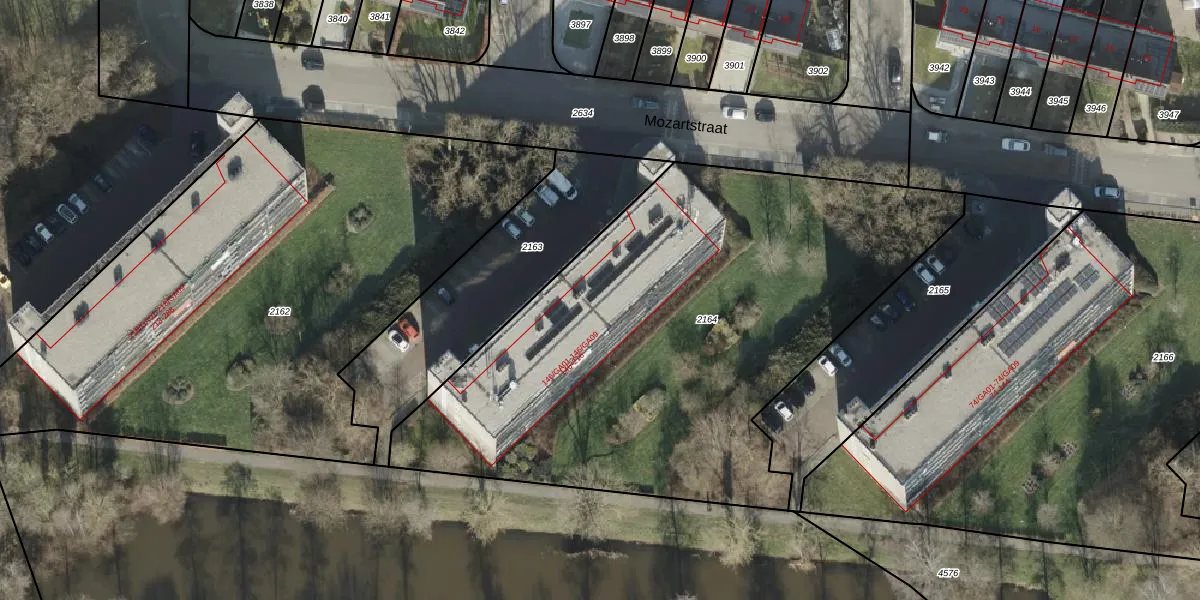 Het perceel waarop Mozartstraat 162 staat heeft een oppervlakte van 3055 m². Dit is een zeer groot perceel. De perceeloppervlakte wordt geregistreerd door het Kadaster. Gedetailleerde informatie over de maten van dit perceel kunt u vinden in het rapport Kadastrale kaart met maatvoering van Mozartstraat 162.