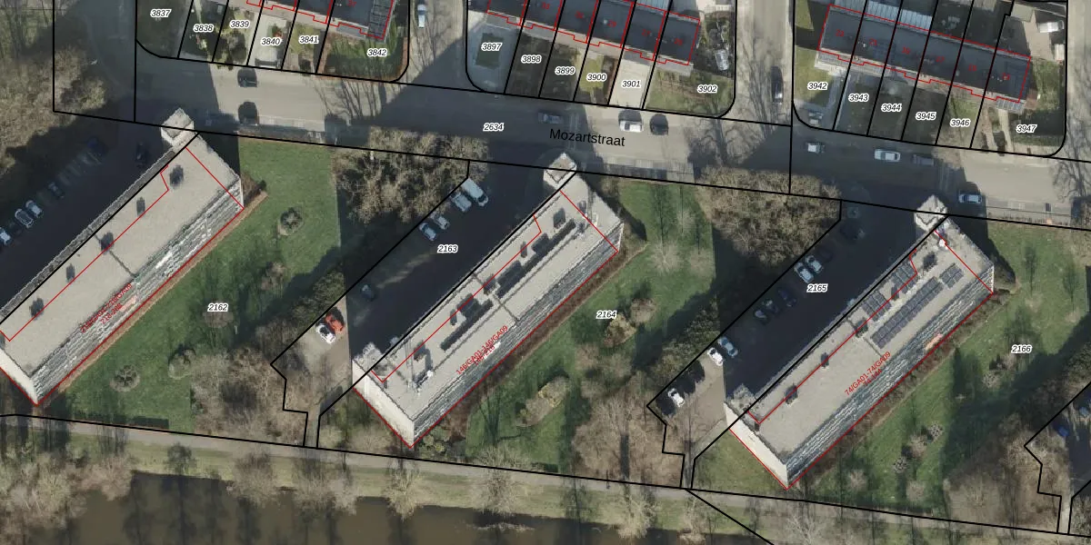 Mozartstraat 184 is gelegen op kadastraal perceel AML01I2164. Deze kadastrale aanduiding is uniek en wordt gebruikt door het Kadaster om eigendomsrechten en andere zakelijke rechten vast te leggen. Het perceel maakt onderdeel uit van de kadastrale gemeente Ambt-Almelo.