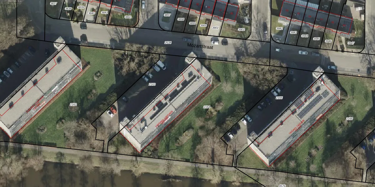 Het perceel waarop Mozartstraat 196 staat heeft een oppervlakte van 3055 m². Dit is een zeer groot perceel. De perceeloppervlakte wordt geregistreerd door het Kadaster. Gedetailleerde informatie over de maten van dit perceel kunt u vinden in het rapport Kadastrale kaart met maatvoering van Mozartstraat 196.