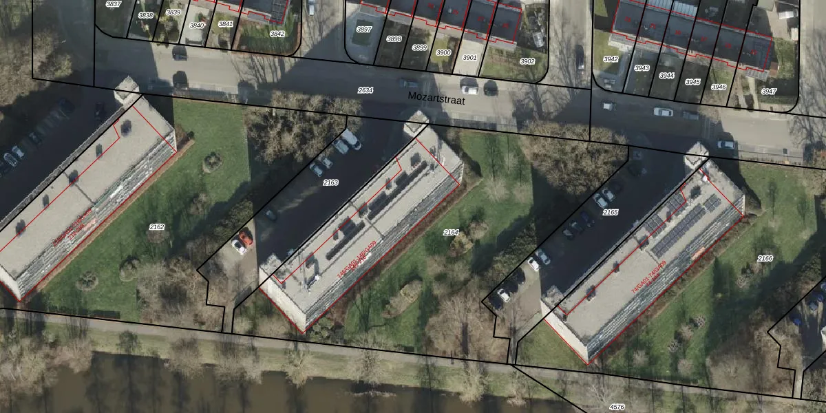 Het perceel waarop Mozartstraat 208 staat heeft een oppervlakte van 3055 m². Dit is een zeer groot perceel. De perceeloppervlakte wordt geregistreerd door het Kadaster. Gedetailleerde informatie over de maten van dit perceel kunt u vinden in het rapport Kadastrale kaart met maatvoering van Mozartstraat 208.