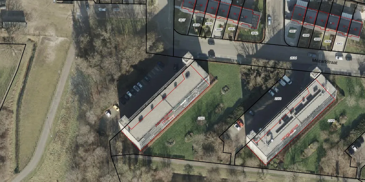 Het perceel waarop Mozartstraat 220 staat heeft een oppervlakte van 3065 m². Dit is een zeer groot perceel. De perceeloppervlakte wordt geregistreerd door het Kadaster. Gedetailleerde informatie over de maten van dit perceel kunt u vinden in het rapport Kadastrale kaart met maatvoering van Mozartstraat 220.