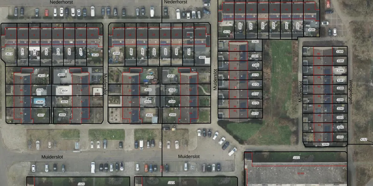 Het perceel waarop Muiderslot 22 staat heeft een oppervlakte van 176 m². Dit is een middelgroot perceel. De perceeloppervlakte wordt geregistreerd door het Kadaster. Gedetailleerde informatie over de maten van dit perceel kunt u vinden in het rapport Kadastrale kaart met maatvoering van Muiderslot 22.