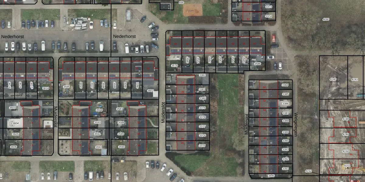 Muiderslot 28 is gelegen op kadastraal perceel AML01M3381. Deze kadastrale aanduiding is uniek en wordt gebruikt door het Kadaster om eigendomsrechten en andere zakelijke rechten vast te leggen. Het perceel maakt onderdeel uit van de kadastrale gemeente Ambt-Almelo.
