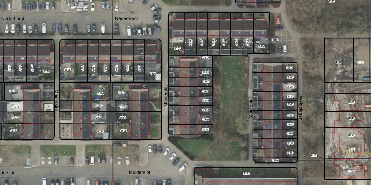 Muiderslot 32 is gelegen op kadastraal perceel AML01M3379. Deze kadastrale aanduiding is uniek en wordt gebruikt door het Kadaster om eigendomsrechten en andere zakelijke rechten vast te leggen. Het perceel maakt onderdeel uit van de kadastrale gemeente Ambt-Almelo.
