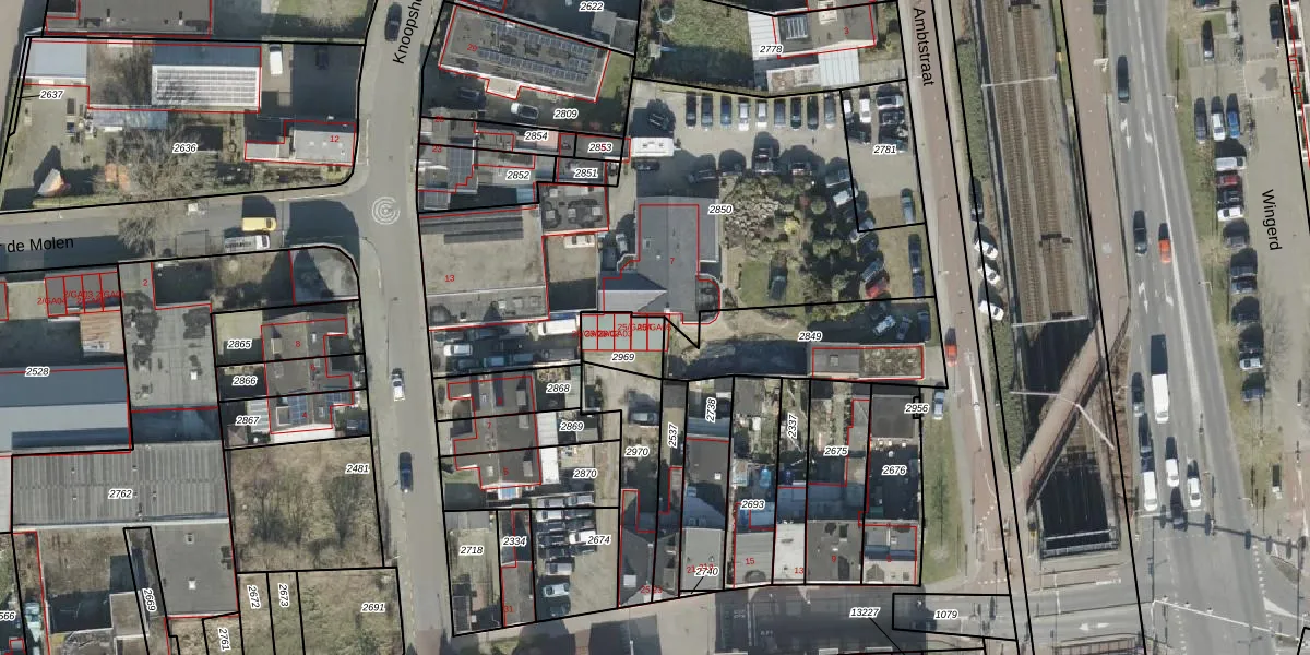 Het adres is gelegen op perceel 2969 in de sectie L en de kadastrale gemeente Ambt-Almelo. De kadastrale aanduiding is aldus AML01-L-2969. De gemiddelde perceelgrootte in Ambt-Almelo is 2069,53 m². Dit perceel is kleiner: de perceeloppervlakte bedraagt 107 m². Het grootste perceel in de kadastrale gemeente is 67,4 ha. Het kleinste perceel heeft een oppervlakte van 0 m². Op het perceel zijn 5 adressen aanwezig. De huidige grenzen van het perceel zijn digitaal in de Basisregistratie Kadaster (BRK) geregistreerd op 10-01-2023.