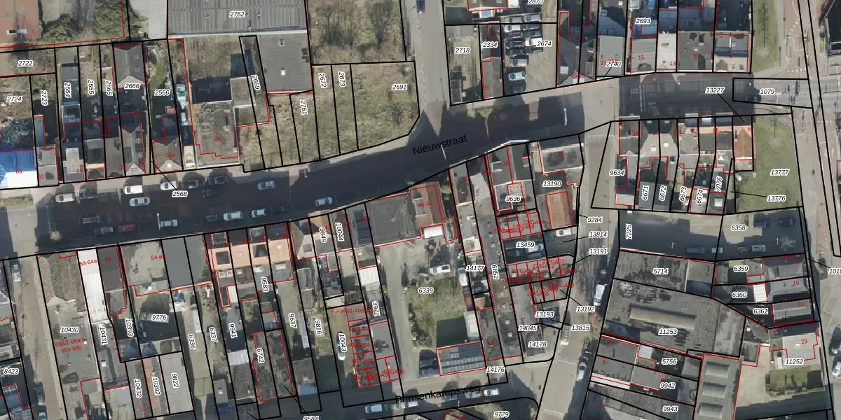 Het perceel waarop Nieuwstraat 34 staat heeft een oppervlakte van 1040 m². Dit is een zeer groot perceel. De perceeloppervlakte wordt geregistreerd door het Kadaster. Gedetailleerde informatie over de maten van dit perceel kunt u vinden in het rapport Kadastrale kaart met maatvoering van Nieuwstraat 34.