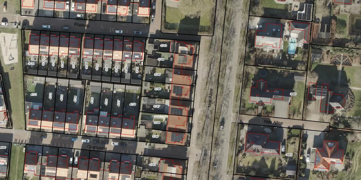 Het perceel waarop Nije Allee 49 staat heeft een oppervlakte van 255 m². Dit is een middelgroot perceel. De perceeloppervlakte wordt geregistreerd door het Kadaster. Gedetailleerde informatie over de maten van dit perceel kunt u vinden in het rapport Kadastrale kaart met maatvoering van Nije Allee 49.