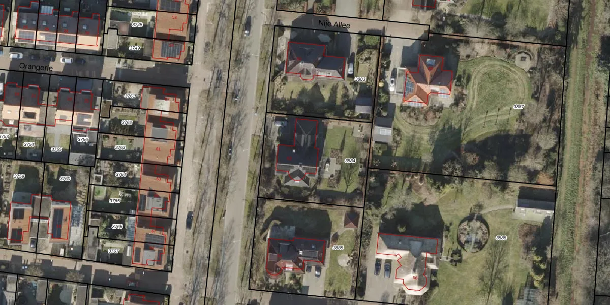 Het perceel waarop Nije Allee 52 staat heeft een oppervlakte van 980 m². Dit is een groot perceel. De perceeloppervlakte wordt geregistreerd door het Kadaster. Gedetailleerde informatie over de maten van dit perceel kunt u vinden in het rapport Kadastrale kaart met maatvoering van Nije Allee 52.