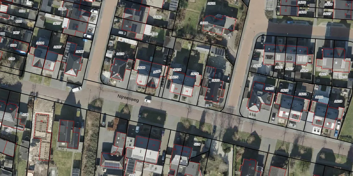 Nijreesweg 32 is gelegen op kadastraal perceel AML01H14274. Deze kadastrale aanduiding is uniek en wordt gebruikt door het Kadaster om eigendomsrechten en andere zakelijke rechten vast te leggen. Het perceel maakt onderdeel uit van de kadastrale gemeente Ambt-Almelo.
