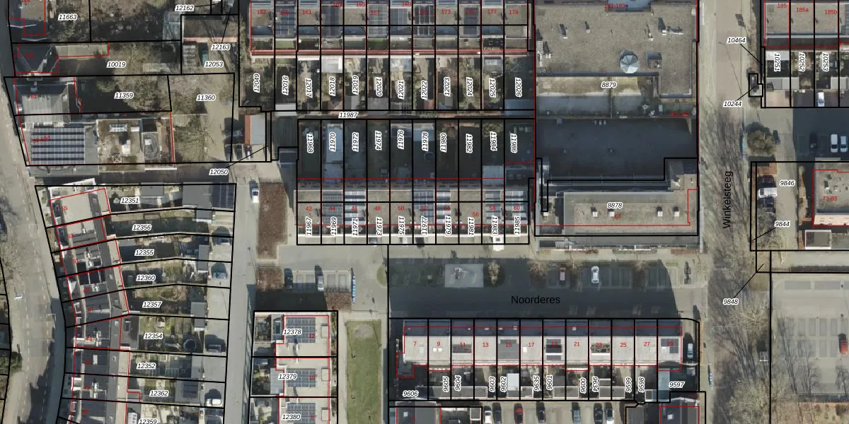 Het perceel waarop Noorderes 52 staat heeft een oppervlakte van 54 m². Dit is een klein perceel. De perceeloppervlakte wordt geregistreerd door het Kadaster. Gedetailleerde informatie over de maten van dit perceel kunt u vinden in het rapport Kadastrale kaart met maatvoering van Noorderes 52.