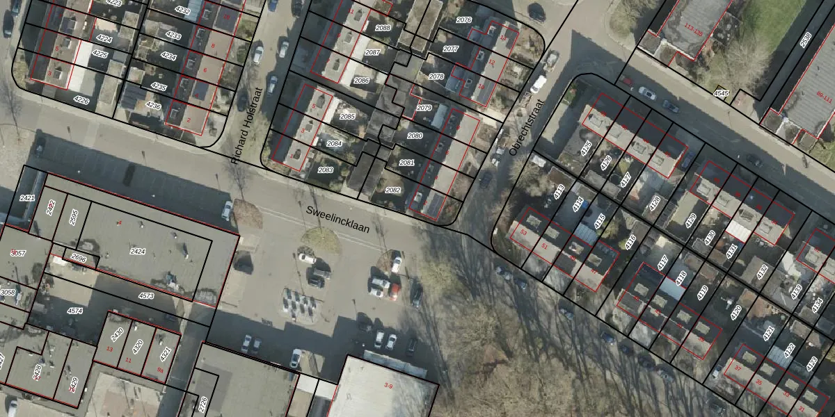 Gebruik de zoekbalk of klik op een perceel voor informatie over de adressen binnen dit perceel.