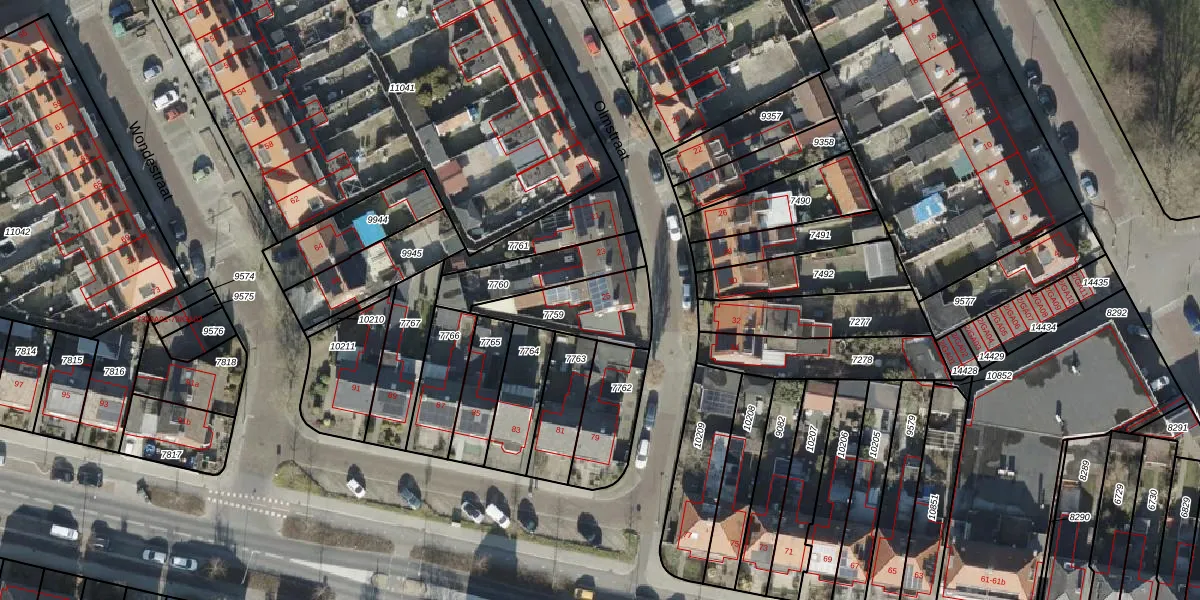 Het perceel waarop Olmstraat 25 staat heeft een oppervlakte van 227 m². Dit is een middelgroot perceel. De perceeloppervlakte wordt geregistreerd door het Kadaster. Gedetailleerde informatie over de maten van dit perceel kunt u vinden in het rapport Kadastrale kaart met maatvoering van Olmstraat 25.