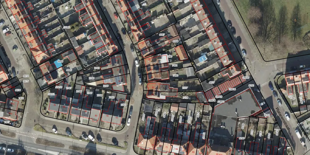 Gebruik de zoekbalk of klik op een perceel voor informatie over de adressen binnen dit perceel.