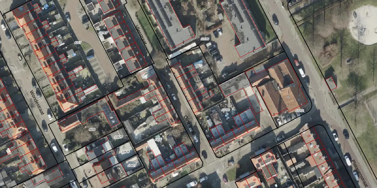 Het perceel waarop Olmstraat 6 staat heeft een oppervlakte van 1665 m². Dit is een zeer groot perceel. De perceeloppervlakte wordt geregistreerd door het Kadaster. Gedetailleerde informatie over de maten van dit perceel kunt u vinden in het rapport Kadastrale kaart met maatvoering van Olmstraat 6.