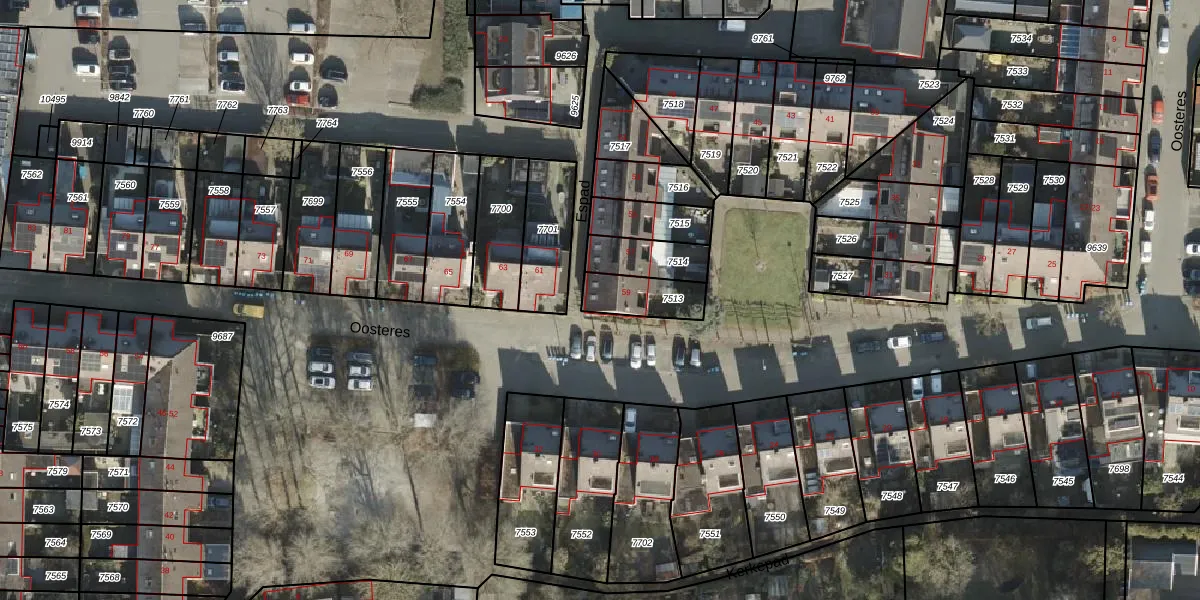Gebruik de zoekbalk of klik op een perceel voor informatie over de adressen binnen dit perceel.