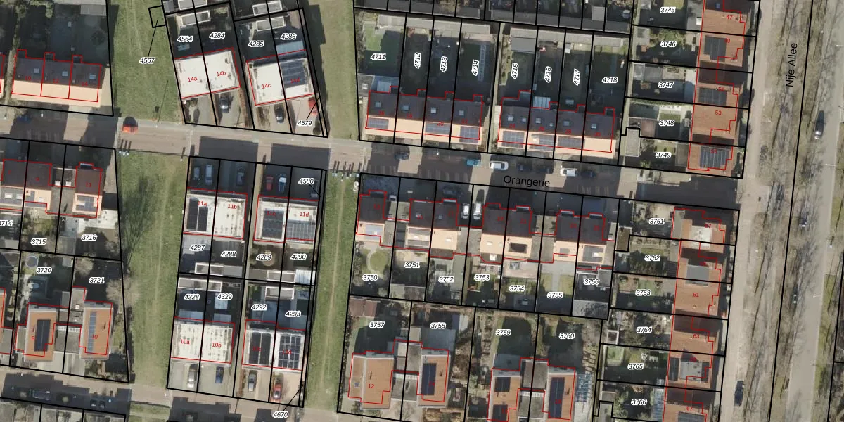 Het perceel waarop Orangerie 15 staat heeft een oppervlakte van 251 m². Dit is een middelgroot perceel. De perceeloppervlakte wordt geregistreerd door het Kadaster. Gedetailleerde informatie over de maten van dit perceel kunt u vinden in het rapport Kadastrale kaart met maatvoering van Orangerie 15.